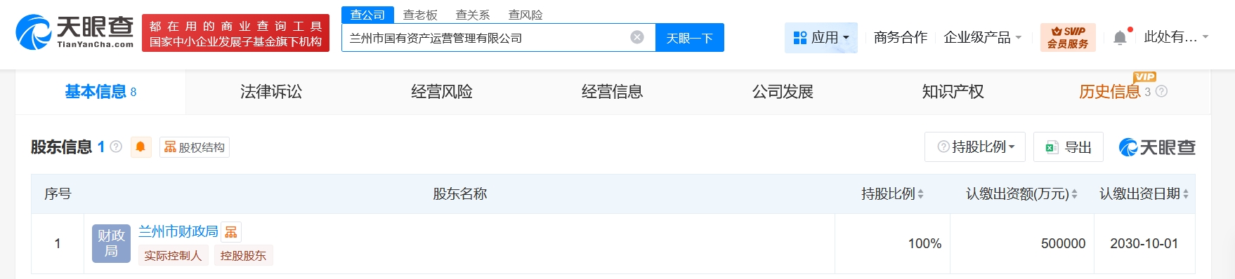 每經(jīng)AI快訊,天眼查工商信息顯示,近日,蘭州市國有資產(chǎn)運營管理有限公司成立,法定代表人為曾東山,注冊資本50億元人民幣,經(jīng)營范圍含以自有資金從事投資活動、企業(yè)管理、融資咨詢服務、財務咨詢、票據(jù)信息咨詢服務、非融資擔保服務、社會經(jīng)濟咨詢服務、企業(yè)管理咨詢等。股東信息顯示,該公司由蘭州市財政局全資持股。
